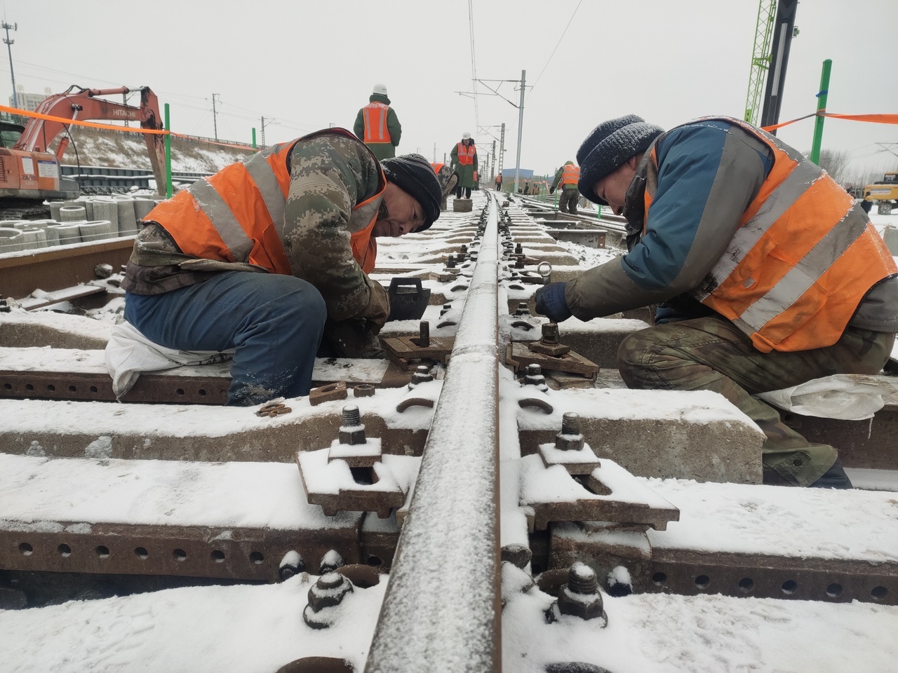 光明大街工程下穿铁路施工阶段面临的施工环境异常复杂:上方是昼夜通行、车流量大的繁忙铁路线,地下则是含水量高、土质松软的沙质地层。如何在此种条件下,确保安全穿越多条铁路线,成为亟待攻克的难题。为此,团队创新性地采用“支点桩+牛腿”结构,将支点桩外移至距离线路中心4.5米处。这一设计彻底避开了铁路限界内的高风险挖孔作业,从根源上消除了塌方隐患;而针对双线铁路,团队则采用“支点桩+承台+型钢混凝土冠梁”结构,用坚固的横梁支撑取代线间支点桩,成功化解了双线铁路施工空间狭窄的难题。这两套支撑方案的实施,为“平移积木”式技术的应用奠定了稳固基础,有力保障了工程安全快速推进,不仅实现了箱体安全就位,还创造了华北地区单日顶进33.7米的施工新纪录。