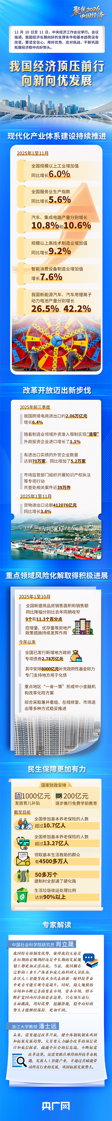 中央经济工作会议12月10日至11日在北京举行。当前经济形势怎么看?“十五五”新开局重点任务如何推进?聚焦舆论关注的重点问题,央广网约请相关领域专家深入解读中央经济工作会议精神。