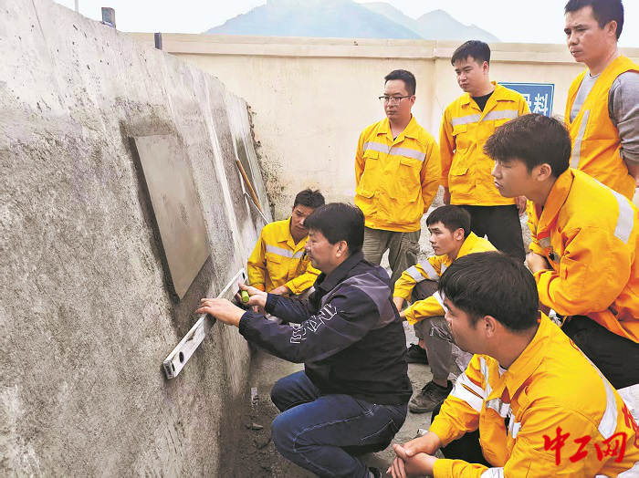 12月17日,在中国铁路南宁局集团有限公司首届八渡路桥青工班作业现场,特级技师廖申福俯身贴墙,手把手演示砂浆抹面的毫米级标准流程。青工们围簇凝视,在技能实操中接续师带徒的匠心传承。安慧翔 摄
