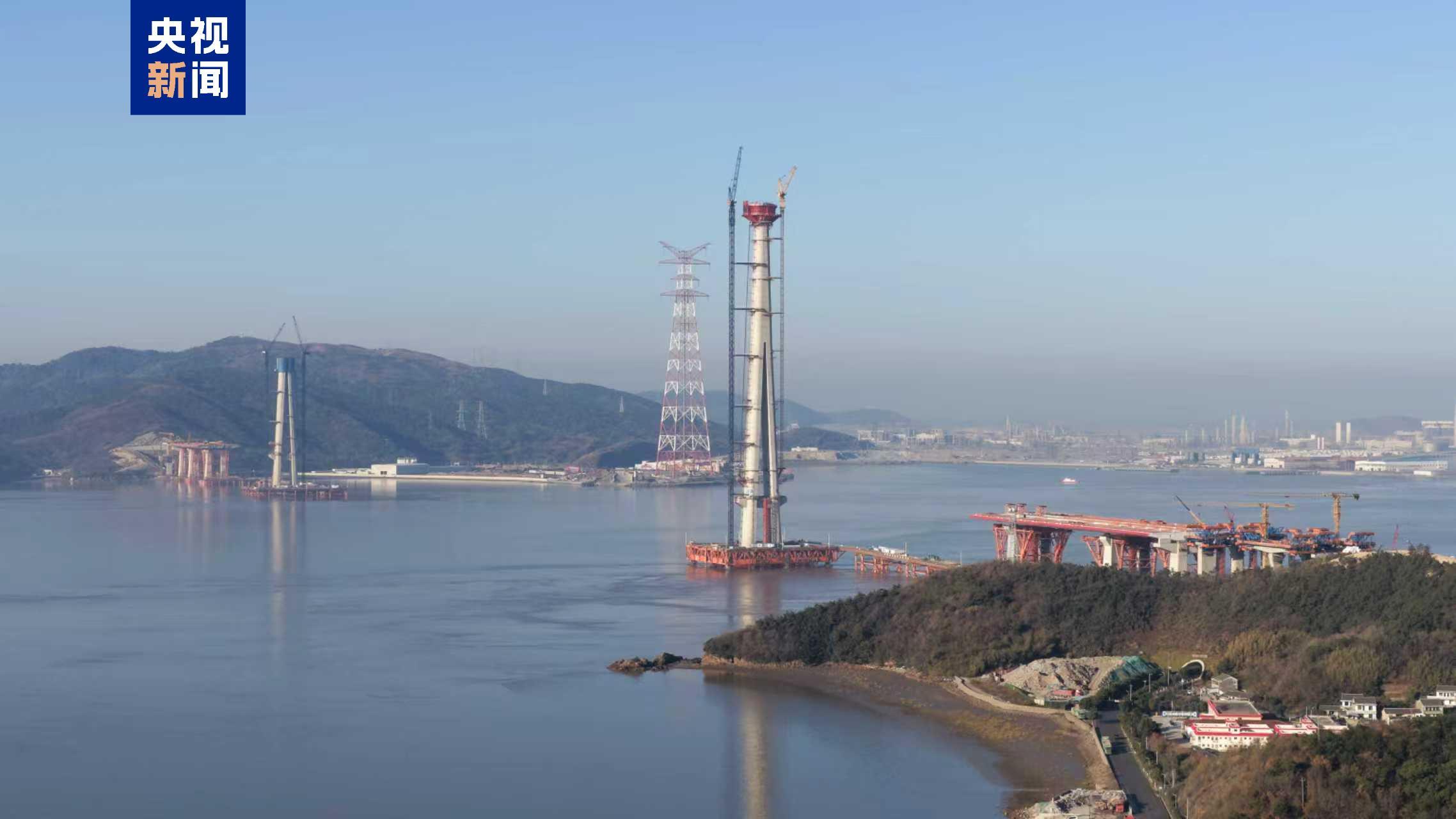 今天中午,甬舟铁路西堠门公铁两用大桥首座主塔顺利封顶,该主塔高度达294米,刷新了世界海中桥梁主塔高度的新纪录,成为世界第一高海上桥塔。