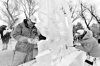 “冰城”新年冰雕创作忙