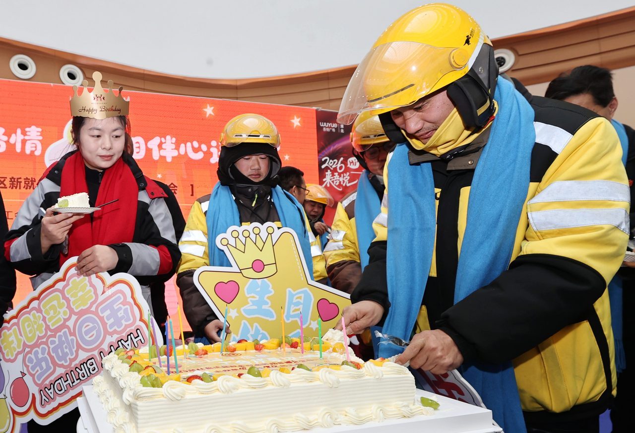 元旦前夕,安徽省淮北市在吾悦广场举办“暖‘新’庆生 情暖冬日”新就业形态劳动者集体生日会暨友好商圈揭牌仪式,20名新就业形态劳动者代表欢聚一堂,共庆生日、共话发展。