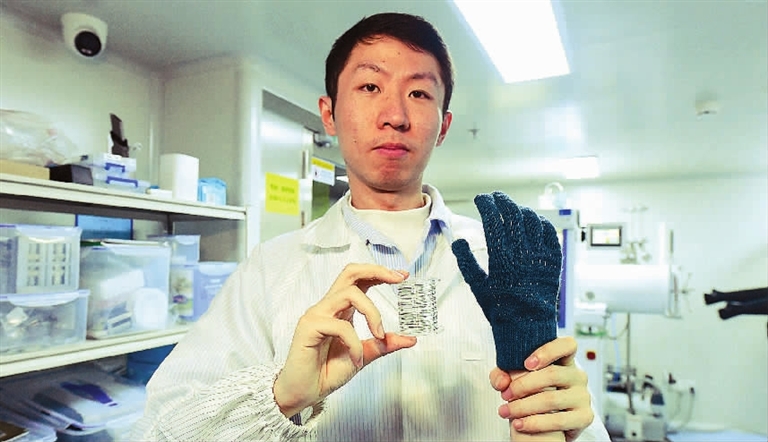 科研人员展示“纤维芯片”。■摄影 贡俊祺