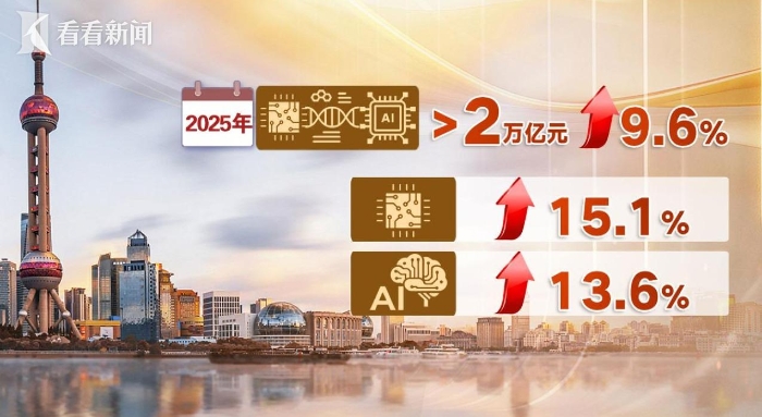 2025年年初,上海就站上了“5万亿城市”的台阶,一年过去,这座城的“加速跑”还在继续。 2025年上海经济成绩单今天公布,全市实现地区生产总值超5万6千亿元,同比增长5.4%,高于全国水平,并创下2020年以来上海的最快增速。 其中,第二产业增加值超1.1万亿元,增长3.5%。工业增加值更是实现了5%的增长。值得关注的是,其内部也发生了"新老交替"的结构性转变。 集成电路、生物医药、人工智能三大先导产业制造业产值,去年同比增长9.6%,产业规模突破2万亿元。尤其是集成电路制造业和人工智能制造业,产值都实现了两位数的增长。 而工业战略性新兴产业总产值增长也达到了6.5%,占规上工业总产值比重达45%。新能源、高端装备等细分领域增速都超过了一成。 第三产业的体量依然最大,占到经济总量近八成,而且增速最快,达到6%。其中,信息传输、软件和信息技术服务业表现亮眼,增加值超过了7千亿元,同比涨幅超15%。平台企业、云计算、集成电路设计企业均实现了快速增长。 位于上海“模速空间”的一家人工智能企业,日前完成了一次重要技术发布。五天前,这家公司开源推出了一款基于记忆科学的AI产品,通过构建分层、动态、可演进的记忆架构,让人工智能具备类似人类的“长期记忆”能力。新产品可使AI自主问题解决率提升至98%以上,人工替代率达到70%,显著提高了用户使用效率和应用效果。 在现场测试中,研发人员展示了该系统在知识召回方面的表现,准确率稳定在97%以上。企业表示,进一步提升记忆召回质量和应用稳定性,将是下一阶段的重点方向。 技术突破也迅速转化为市场表现。过去一年,依托AI生产力能力,企业的订单规模达到2.5亿元,同比增长约50倍。随着业务快速扩张,公司计划在今年将团队规模扩大至原来的三倍,以应对持续增长的市场需求。 企业创始人兼CEO温德亮表示,当前感受到的“上行”并不仅是单一公司的增长,而是AI正在产业链上下游深度融合、重塑生产力方式的结果。按照规划,公司2026年的年度业绩目标为6亿元,但从目前进展来看,短短不到三个月已完成近一半目标,全年业绩有望再次超出预期。 作为上海人工智能产业的重要集聚区,“模速空间”目前已吸引200多家企业入驻,推动徐汇区完成70个大模型备案,约占全市总量的60%。围绕算力调度、公共语料、金融服务、人才服务和应用场景对接,这里正逐步形成覆盖AI全产业链的综合支撑体系,为新一轮技术创新和产业落地提供土壤。 齐备的产业链上下游,在一起汇聚成面,上海已在集成电路、人工智能等先导领域形成了全面且逐渐成熟的生态。在岁末年初不到一个月的时间里,沐曦股份、壁仞科技、天数智芯3家上海GPU企业先后登陆资本市场,与三者并称为“四小龙”的燧原科技,也已完成了IPO辅导。来自资本市场的认可无疑是上海新动能澎湃的直接反馈。 上海在人工智能和高端制造领域持续加码政策支持,为像沐曦这样的创新型企业提供了良好的成长土壤。完善的产业环境和制度保障,不仅降低了创业门槛,也不断吸引着一批有理想、有抱负、心怀家国情怀的创新者和创业者汇聚上海,形成良性集聚效应。 在产业结构层面,上海正加快推动制造业与服务业并行发展、相互赋能。一方面,三大先导产业发挥引领作用,持续做强做优;另一方面,软件信息技术、信息服务等生产性服务业被不断带动,整体发展势头迅猛,成为支撑城市经济高质量增长的重要力量。 经济实现“加速跑”的同时,上海的城市能级也在持续提升。 过去一年,上海各类持牌金融机构超过了1800家,国际货币基金组织上海中心开业,数字人民币国际运营中心在沪正式运营。 上海港集装箱吞吐量去年超过了5500万标准箱,同比增长近7%,连续第十六年位居全球港口首位。创新策源方面,全市技术合同成交额去年近6500亿元,同比增长近四分之一。 在上海社科院经济所所长沈开艳看来,2025年上海“五个中心”能级实现同步跃升,标志着城市发展正从单项功能领先,迈向全球城市综合功能的协同发力阶段。在这一过程中,上海逐步打通了科技创新、产业发展、金融支持、贸易往来和航运服务等关键环节,形成全链条、闭环式的发展体系,全球资源配置能力和价值创造能力实现了质的提升。这既是国家重大战略在上海的具体落地,也为上海巩固全球顶尖城市地位、服务高水平对外开放和长三角一体化发展,提供了坚实支撑。 站在需求侧看,上海2025年经济增速的背后,是“三驾马车”的共同发力。 投资端,去年全市固定资产投资同比增长4.6%。其中,工业、基础设施投资分别增长了两成和一成。 出口端,上海去年外贸出口总额超2万亿元,增长超一成。出口目的地也日益多元,去年上海对东盟、共建"一带一路"国家的出口都超过了两成。“新三样”产品出口额更是同比大增超17%。 消费端,上海社零增速去年实现了逐级连跳,从一季度的-1.1%,到上半年由负转正为1.7%,前三季度进一步回升到4.3%,最终以全年4.6%的增速收官,高于全国的3.7%。 专家指出,上海包括消费在内的多项经济数据,与过去一年出台的精准调控政策直接挂钩。兴业研究区域经济研究员赵晓露举例说,上海发放的消费券,并非简单的财政补贴,而是通过政府补贴、平台引流和商户让利相结合的联动模式,形成了明显的杠杆效应。借助数字平台,消费券能够精准触达消费意愿较