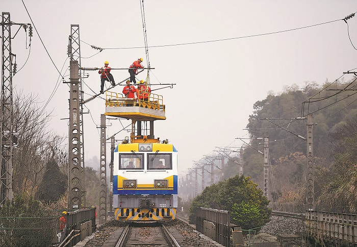 南铁南昌供电段为应对春运期间列车运行密度增大的变化,提前制定详细的设备保障方案,加大对沪昆、杭昌高铁和京九、武九铁路等线路的检修力度,全力保障春运期间旅客平安出行。本报通讯员 胡国林 赖紫轩 摄