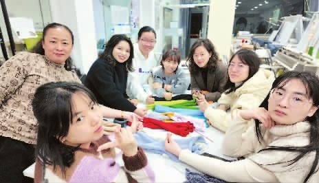 “哇,原来这个起针这么难!”“老师好厉害,我要记下来。”时针指向六点,伴随着针织手摇横机有节奏的声响,学员们认真地看着胡老师演示起针。在授课方式上,相较于专业课中按部就班的学习,胡老师更加侧重实用和兴趣引导。她笑着说:“操作机器对她们来说,可能很新鲜。所以,我先演示一遍拆解步骤,让她们感受成品诞生的过程。”当有的学员摸索着针织手摇横机时,另一边也有学员带来了上节课未完成的钩花作品,在胡老师的指点下逐渐成型。一条条围巾在一个半小时的课堂上逐渐成型,成为这个冬天最为温暖的纪念。