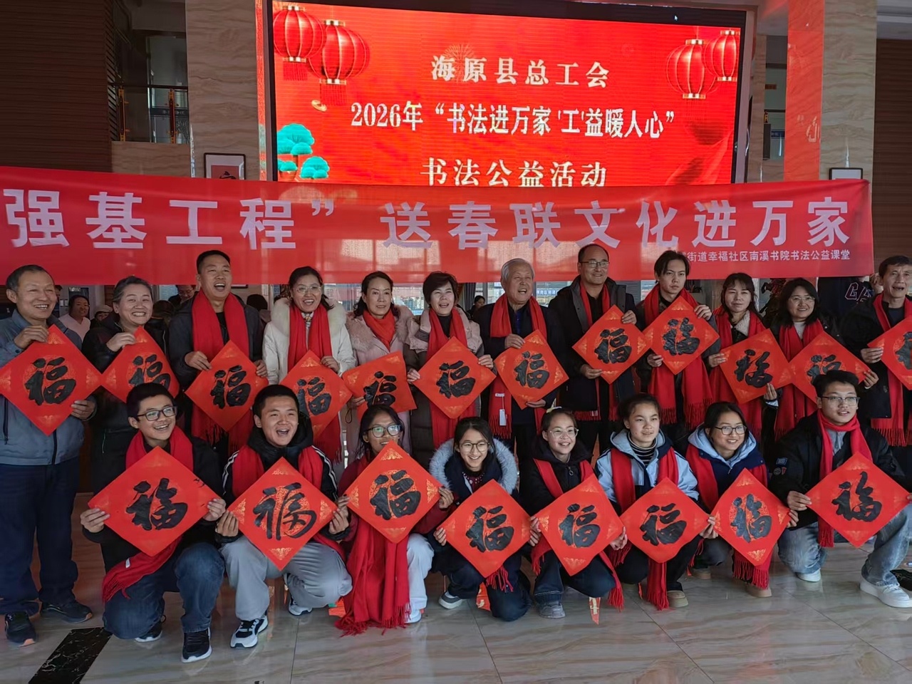 2月1日至2日,宁夏回族自治区中卫市海原县总工会以“书法进万家‘工’益暖人心”为主题,精心策划了一场深入基层的送万福进万家书法公益活动。活动先后走进海兴开发区物流园区“司机之家”和海城街道南苑社区,以笔墨传递温情,为一线职工群众提前送上充满文化韵味的新春祝愿。 作为海原县总工会文化惠民系列活动的重要实践之一,海原县总在活动筹备阶段锚定“有厚度、有温度”目标,对笔墨纸砚筹备、现场书写秩序规划、职工群众参与引导等环节进行了周密考量,不仅确保书法创作环节专业有序进行,也为广大职工营造了可感、可触、可参与的传统艺术体验环境。 活动现场气氛热烈、亮点纷呈。“中国好人”蒋儒龄展纸挥毫,楷、隶、行等多种书体挥洒自如。一幅幅作品既展现书法艺术之美,又融合本土气韵与新春期许。书写过程中,他与职工群众交流书法心得,以言传身教传递向上向善的好人精神。 在海原县书协、幸福社区“南溪书院”老师的示范带动下,书法教师各展所长,少年学子执笔接力。师生联手书写的场景,勾勒出传统文化薪火相传的生动图景。浓郁的艺术氛围感染了在场职工,他们纷纷拿起毛笔体验书写乐趣。现场欢声笑语、墨香四溢,送福活动升级为沉浸式传承文化、传递祝福的欢乐盛宴。 集中书写活动结束后,海原县总工会负责人带领工作人员携带现场精心创作的春联、“福”字以及米、面、油等慰问物资走访慰问困难职工。每到一户,慰问组都与困难职工及其家人促膝交谈,详细询问他们的身体状况、家庭收支、医疗保障、子女教育等方面的实际困难,耐心倾听他们的诉求,并鼓励他们保持乐观心态,积极面对生活。火红的春联带来浓浓年味,也让职工们感受到来自“娘家人”实实在在的关怀。 据统计,此次活动共送出春联4000副、“福”字3000张,近750名职工群众领到了暖心“文化年货”。(工人日报客户端记者 马学礼 李静楠 通讯员 马晓燕)