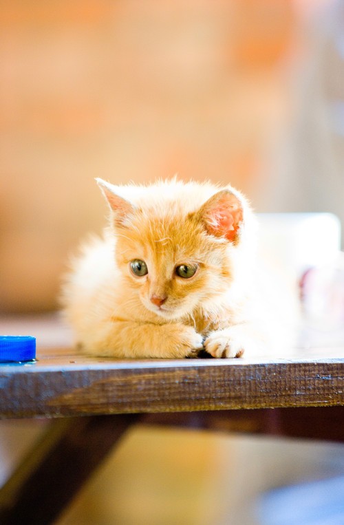 上图表现的是趴在坐上猫咪的可爱场景。拍摄者采用了比较浅的景深,主体突出, 营造了美丽的背景虚化和柔美的画面效果。 |