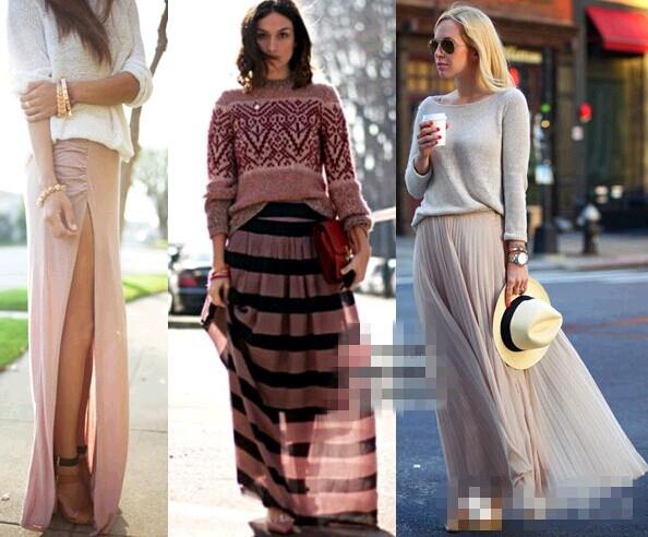 如果你是上班族,想要干练又女人味,那么搭配铅笔裙就是你的职场不二选择。关于搭配方法你完全可以参照上面的阔摆裙,大饼准备省点口水为省水省电的国民大计做贡献。  不过值得一提的是,宽大的毛衣搭配纤细的铅笔裙能搭出非常chic的显瘦LOOK,如果你的铅笔裙能让你看起来显瘦,那么就算毛衣全部拉到外面,你的裙子是否是mini裙长度也没那么重要啦~ ③毛衣+长裙