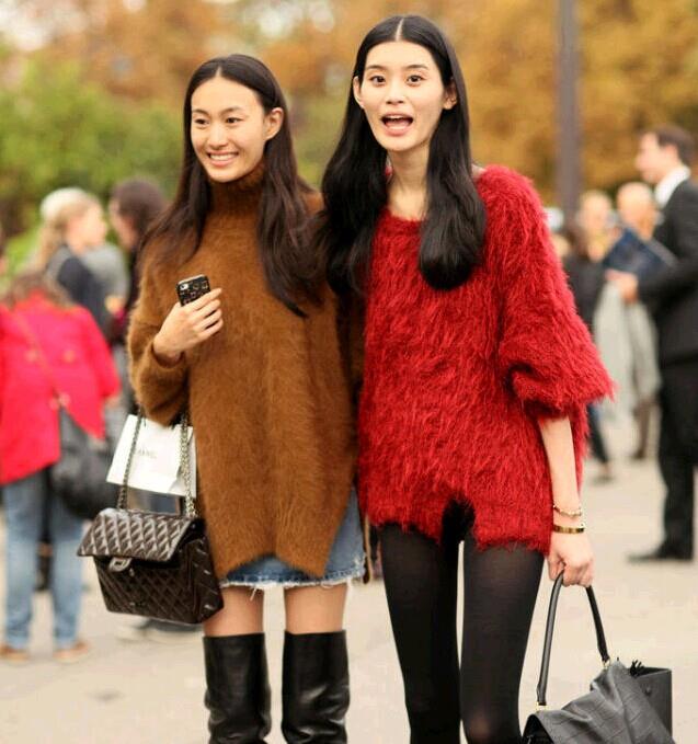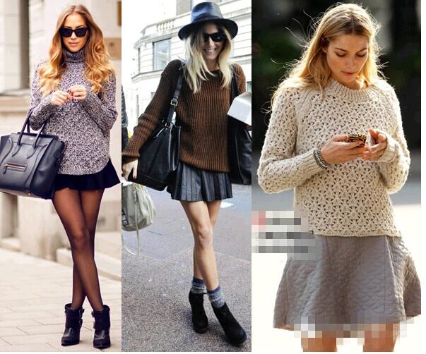 大概说说毛衣和针织衫,其实她们都属于针织类,了一般情况下针织衫比毛衣织法密一些,针织衫是机织,所以大饼在这不做详细分类,说是套头毛衣搭配,其实就是套头针织衫咯~越来越不倾向于废话了,咱直接开始说正事儿: ①毛衣当裙