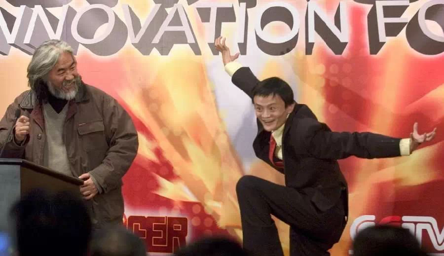 2005年12月8日下午,马云在北大演讲时即兴表演制片人张继中为其设计的“武侠形象”。阿里巴巴有两个非常重要的文化,第一个叫作武侠文化。大家都知道,马云非常喜欢读金庸的武侠小说,所以一到他的公司,会发现所有的办公室和会议室,挂的牌子全部是金庸小说里的,例如“华山论剑”或者“逍遥风”之类名字。更夸张的是,阿里巴巴的每一个高管都有花名,而这些花名大部分来自于金庸小说。