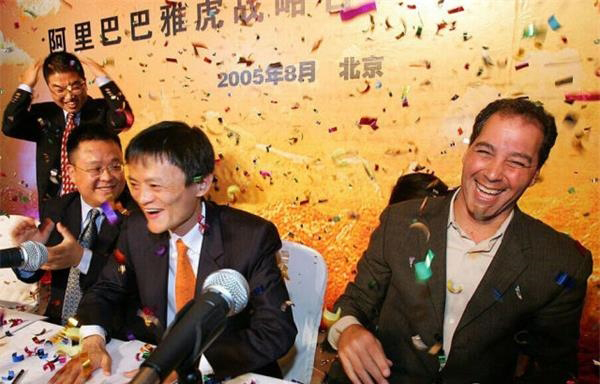 马云与雅虎的首席运营官Daniel Rosensweig。2005年8月11日,阿里巴巴雅虎在北京宣布签署合作协议。雅虎以雅虎中国全部资产和10亿美元换得对阿里巴巴40%股份。雅虎首席运营官丹尼尔·罗森格(Daniel Rosensweig)倾身在马云耳边低语。罗森格回忆自己说道,“杨致远曾提醒我,无论我做什么,都不要让马云说他收购了雅虎。”马云当时身子后倾,放声大笑。