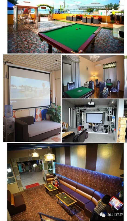 较场尾民宿一般会提供各种娱乐设施,麻将、桌球、投影、游戏机、KTV等,有的还有自家的咖啡厅、小酒吧、小茶室,有的自家养着狗狗也欢迎客人带狗,所以到了海边就想宅着也不会无聊,喝杯小酒叹杯咖啡,吹吹海风,和朋友聊天吹水,或者打打麻将玩个杀人游戏,逗逗可爱的小狗,这样的居家活动,一样可以让你丰富多彩。