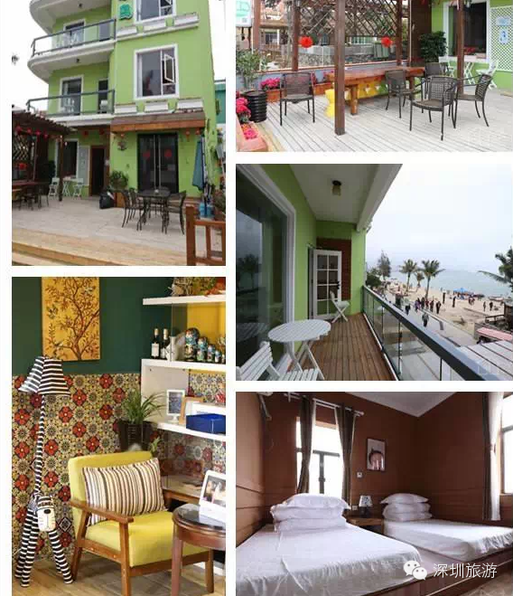 它是较场尾最早的民宿之一,如今,它重新装修,华丽回归了!就在海边第一排,绿色的外墙让人感觉内心平静下来,有海景房,有落地玻璃小阳台,还有一个面朝大海的露台…