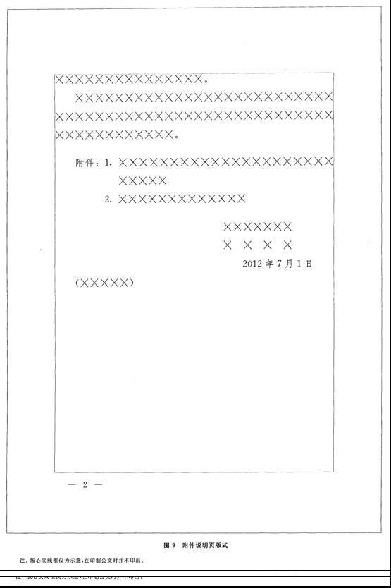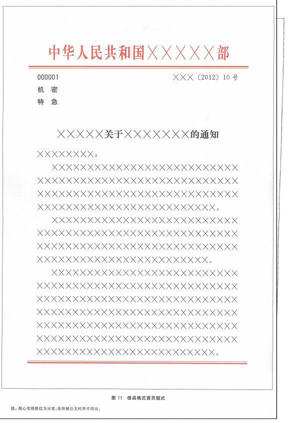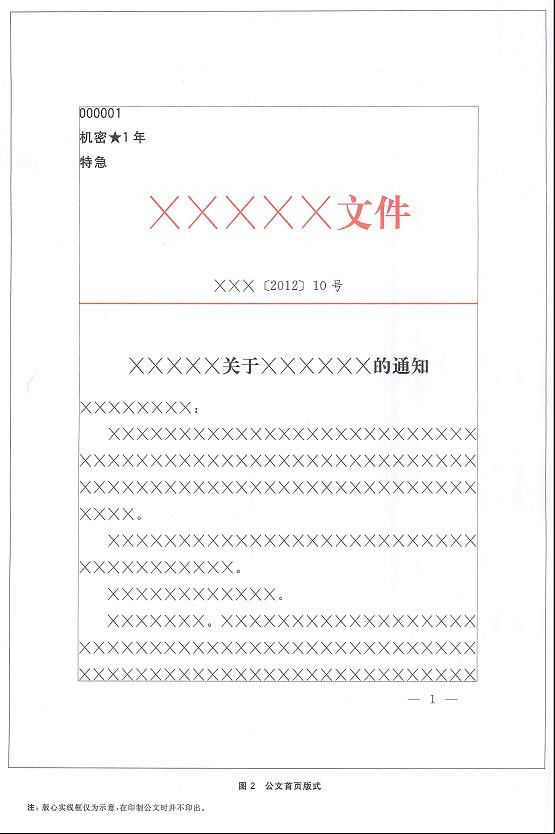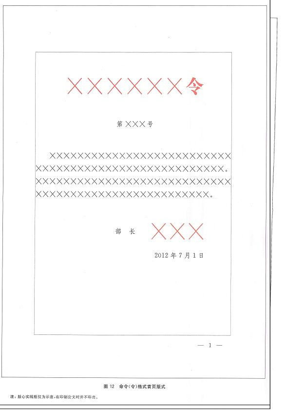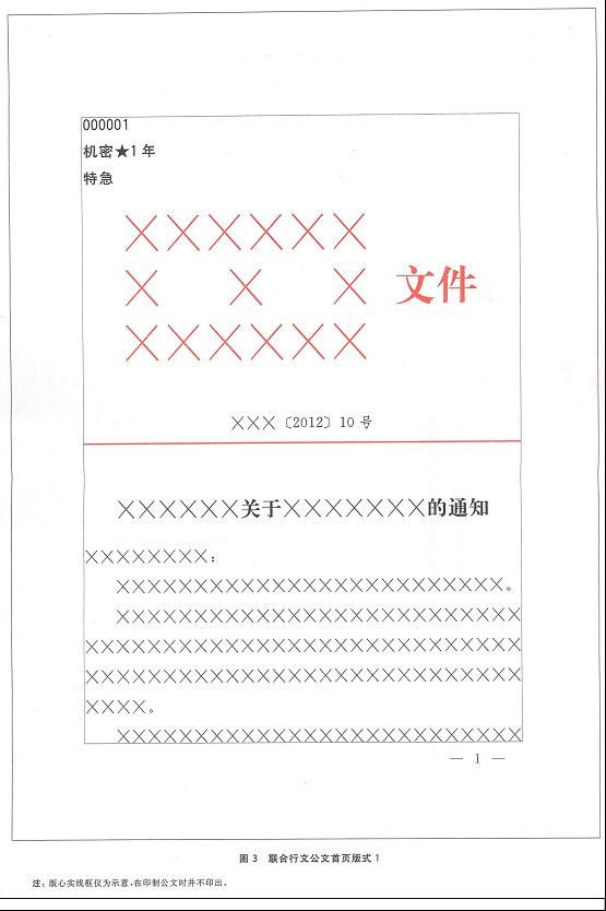 | A4型公文用纸页边及版心尺寸见图1;公文首页版式见图2;联合行文公文首页版式1见图3;联合行文公文首页版式2见图4;公文末页版式1见图5;公文末页版式2见图6;联合行文公文末页版式1见图7;联合行文公文末页版式2见图8;附件说明页版式见图9;带附件公文末页版式见图10;信函格式首页版式见图11;命令(令)格式首页版式见图 |
