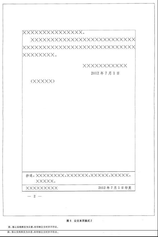 | 版记不加印发机关和印发日期、分隔线,位于公文最后一面版心内最下方。 |