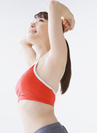 平卧在长条凳或者茶几上,向上伸直双臂,使其在肩膀的正上方,手掌朝前,手腕伸直,收腹。屈肘放下重物,肘部稍低于肩的位置,伸直双臂回到起始位置。