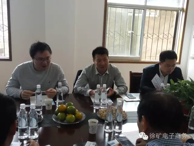 徐矿集团电商产业办公室主任黄友静、副主任燕宪连先后介绍了徐矿电商产业的成立、发展及经营优势。徐矿集团电商产业办公室自成立以来先后开展了电商人才培训、社区电商开拓、电商资源挖掘、电商产业园招商引资等业务。徐矿集团人力资源丰富,具有20000多人的关破矿井待就业人员,具有旗山月饼、馨悦食品、金瓶梅白酒、新河矿泉水等多类目电商产品,具有宝通物流、旗山矿、夹河矿、庞壮矿、张集矿等电商产业园多种选择和丰富的土地资源。