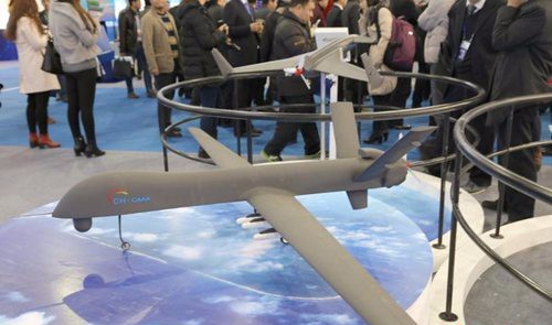 12月5日,第二届中国·河北军民融合暨国防工业协同创新成果展洽会在河北省廊坊市国际会展中心开幕,11家大型军工集团携带近年来具有代表性的军转民重大成果和展品亮相,并签署合作协议178项。参会的中国航天空气动力技术研究院不但展出了彩虹-4、彩虹-3等无人机真机,还展出了最新研制成功的彩虹新型中高空长航时无人机模型。