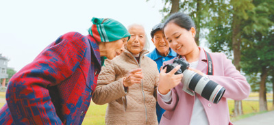 为了满足老人们的需求,由海盐县团委主办,该县供电公司团委承办的“时光剪切师——美丽乡村行·情暖夕阳红”公益摄影活动,在各方支持下已经走过了四个年头,几乎覆盖了海盐县所有街道和乡镇,成为在当地老人中小有名气的公益项目,每年都有上百位老人报名参加。摄影志愿者们走进乡村和敬老院,为他们免费拍摄和制作生活照、全家福。此外,志愿者还在多个社区开展百张“微笑老人 幸福瞬间”照片展示活动,通过微博、微信招募志愿者,向社会传播正能量。