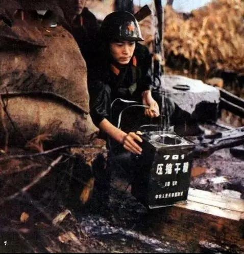 | 在猫耳洞中用压缩饼干桶装水的战士。(来源:央视网) |