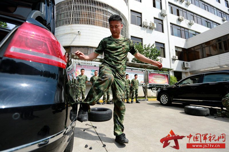 " 跑到十米处放置安全警示三角架、折返回来打开后备厢、拿出工具和备用轮胎、放置千斤顶……"这是上海边防支队勤务中队正在举行的驾驶员岗位技能竞赛的场景。