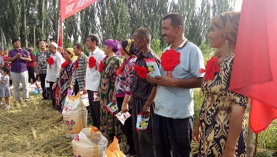 贫困户亚森·如苏力开心的说:“非常感谢大家的关心,谢谢工作队和村干部组织村民为我收割了麦子,帮我解决了生产困难,希望以后多开展这样的活动。”